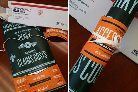 Rolled and tied with a boxing glove lace matched to address label and mail 1st class priority tube.