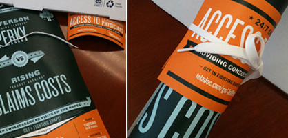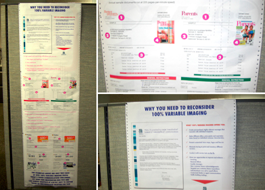 3 way matched mailing, hand fulfilled. Digitally printed and personalized bout poster with purls, Matching personalized brochure.