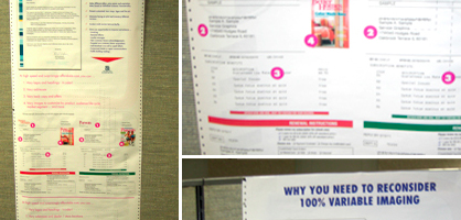 We can varnish, emboss, die cut, personalize and affix all in line, one press ok, no separate card printing and affixing. All from one sheet of paper get a self mailer with multiple 3 ply 27 mil cards. Fully personalized and assembled in line that comes off ready to mail.